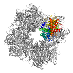 | PDB Description: | RIBULOSE 1,5 BISPHOSPHATE CARBOXYLASE/OXYGENASE (LARGE CHAIN) |