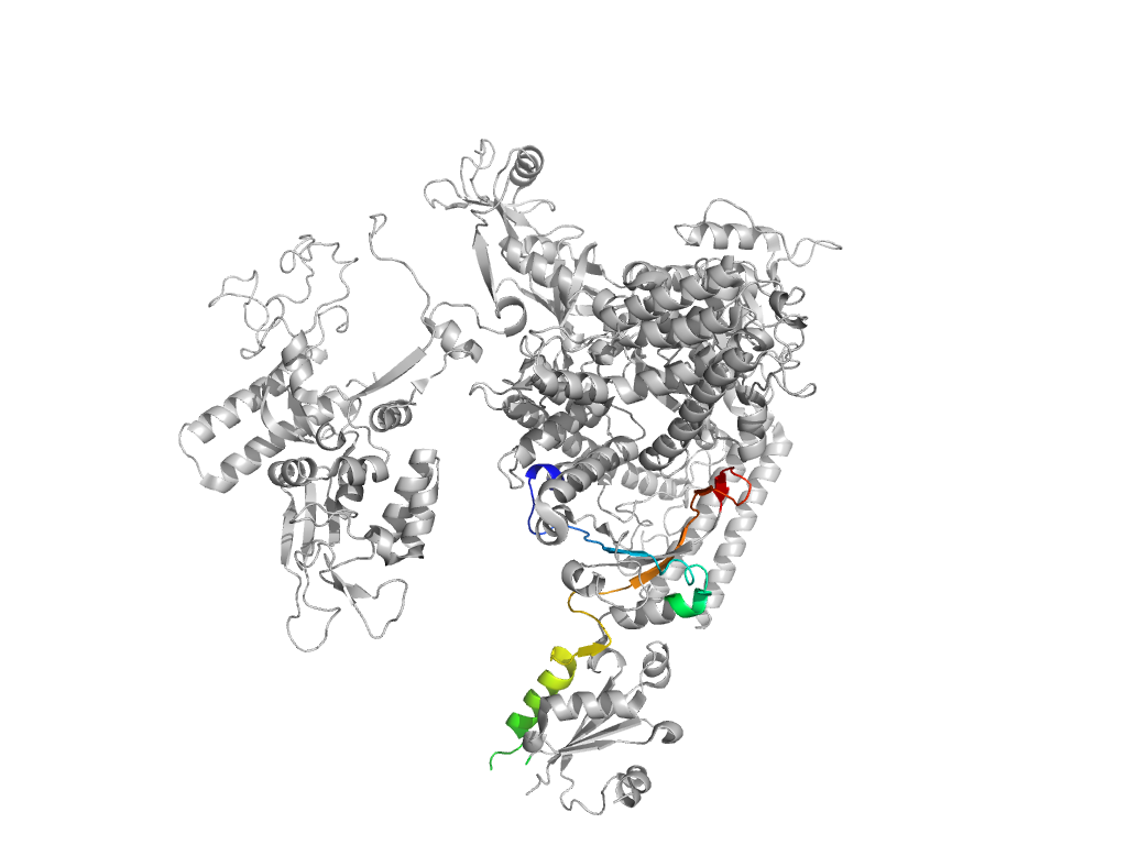 e1twhA5 A:1060-1102,A:1301-1385,A:1405-1450 central helical domain in RNA-polymerase beta-prime subunit central helical domain in RNA-polymerase beta-prime subunit central helical domain in RNA-polymerase beta-prime subunit