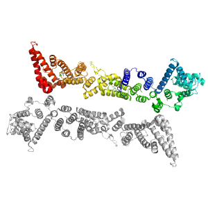 | e2qx5B1 | B:200-374,B:405-837 | Repetitive alpha hairpins | ARM repeat | ARM repeat |