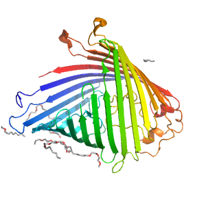 | e3sy9B2 | B:7-70,B:80-422 | Outer membrane meander beta-barrels | Porins | Porin |