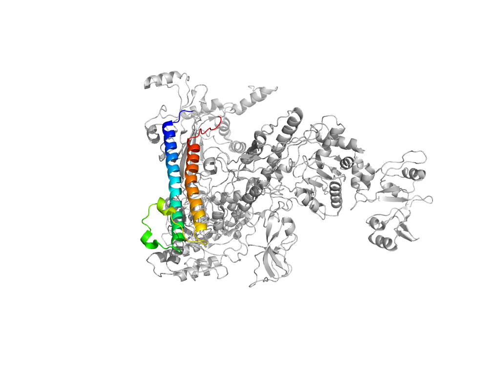 e4kmuI4 I:895-931,I:1135-1151,I:1216-1376 central helical domain in RNA-polymerase beta-prime subunit central helical domain in RNA-polymerase beta-prime subunit central helical domain in RNA-polymerase beta-prime subunit