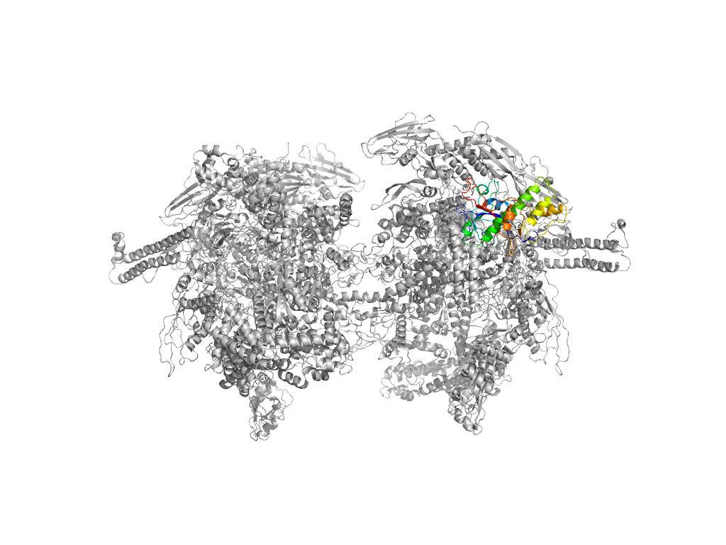 e4kmuI4 I:895-931,I:1135-1151,I:1216-1376 central helical domain in RNA-polymerase beta-prime subunit central helical domain in RNA-polymerase beta-prime subunit central helical domain in RNA-polymerase beta-prime subunit
