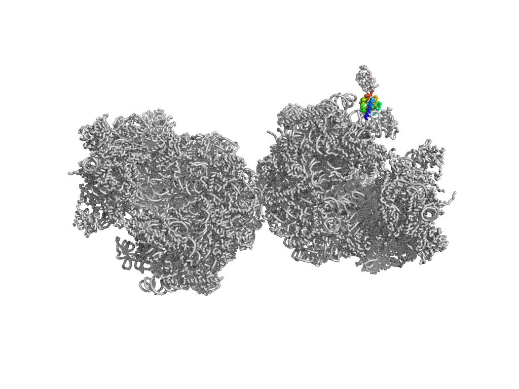 e4u4ro51 o5:2-120 Long alpha-hairpin Ribosomal protein L29 (L29p) Ribosomal protein L29 (L29p)