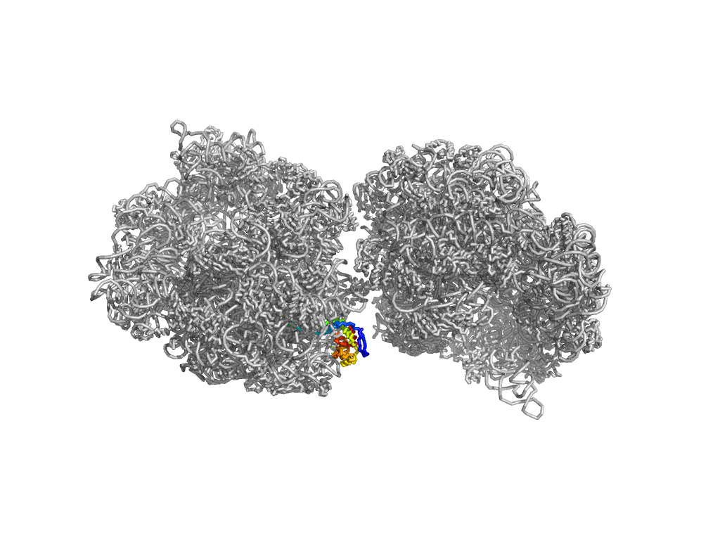 e4w2hB21 B2:1-70 Long alpha-hairpin Ribosomal protein L29 (L29p) Ribosomal protein L29 (L29p)