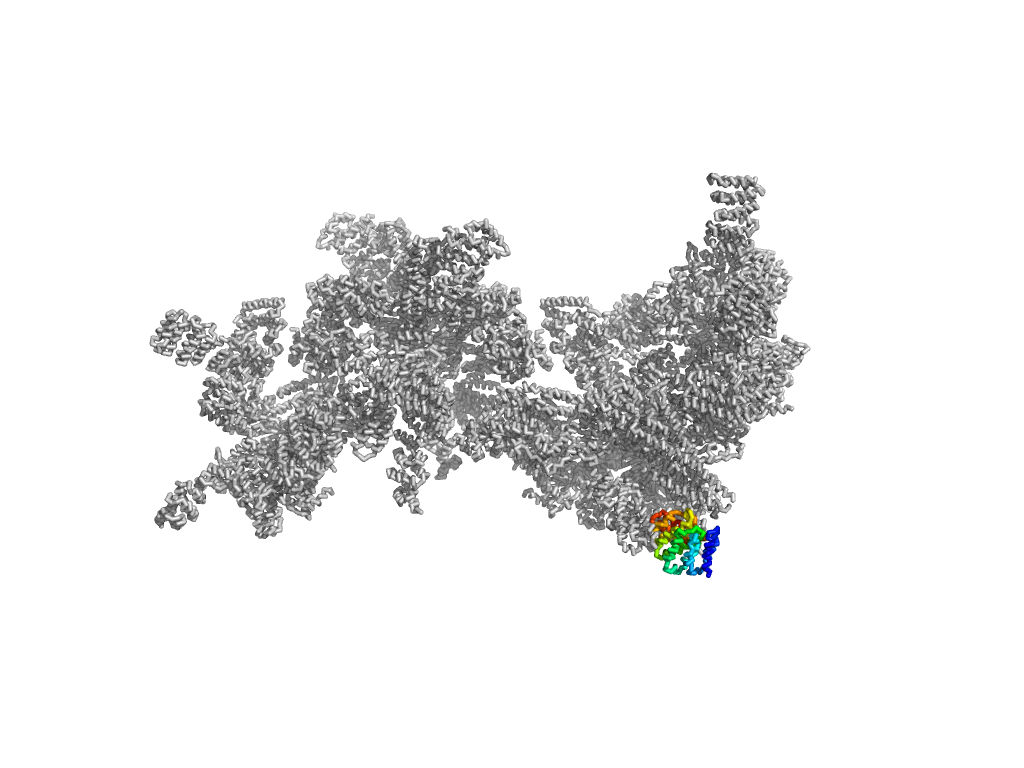 e4wsnO2 O:165-215 26S proteasome regulatory subunits C-terminal helices 26S proteasome regulatory subunit RPN9 C-terminal helix 26S proteasome regulatory subunit RPN9 C-terminal helix