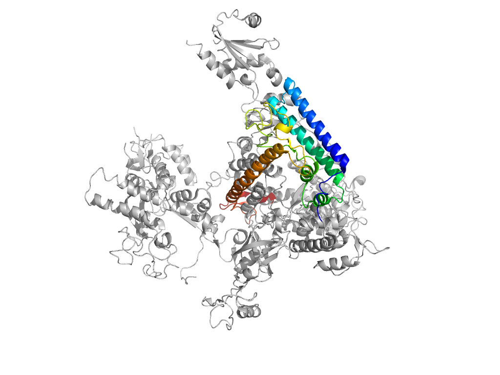 e4x67A7 A:1060-1102,A:1301-1445 central helical domain in RNA-polymerase beta-prime subunit central helical domain in RNA-polymerase beta-prime subunit central helical domain in RNA-polymerase beta-prime subunit