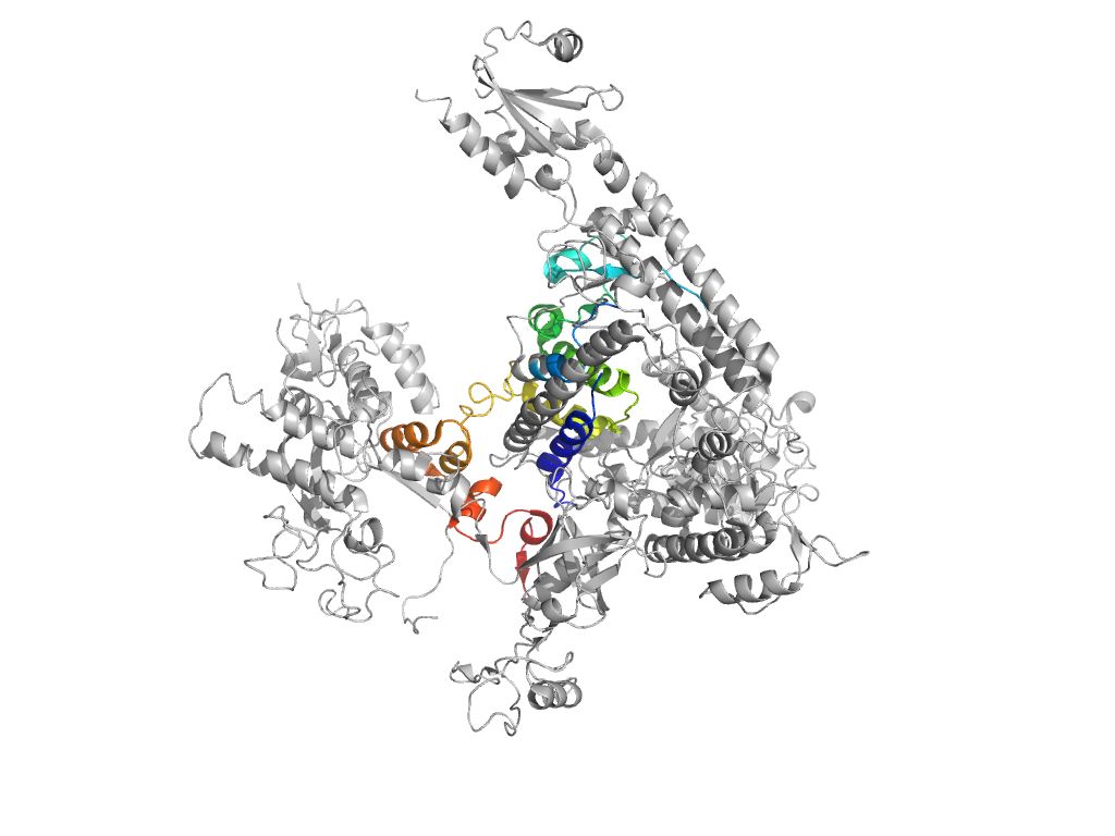 e4x67A7 A:1060-1102,A:1301-1445 central helical domain in RNA-polymerase beta-prime subunit central helical domain in RNA-polymerase beta-prime subunit central helical domain in RNA-polymerase beta-prime subunit