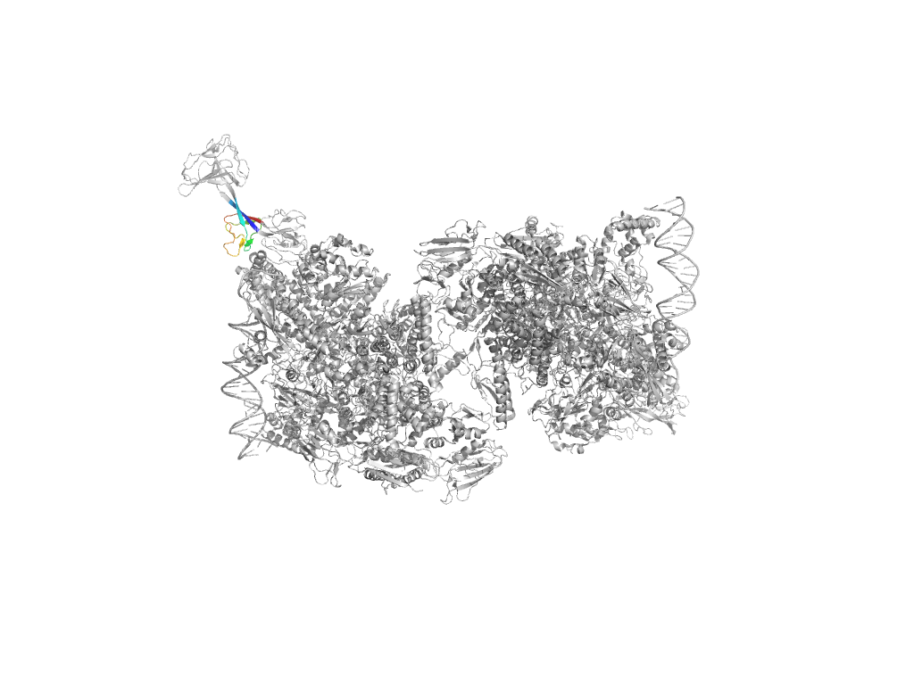 e4xlqJ3 J:949-1109 second helical domain in RNA-polymerase beta-prime subunit second helical domain in RNA-polymerase beta-prime subunit second helical domain in RNA-polymerase beta-prime subunit