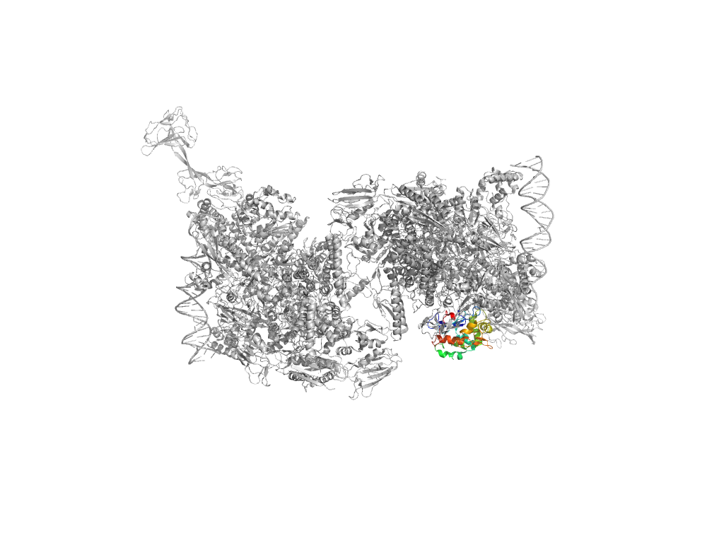 e4xlqJ3 J:949-1109 second helical domain in RNA-polymerase beta-prime subunit second helical domain in RNA-polymerase beta-prime subunit second helical domain in RNA-polymerase beta-prime subunit