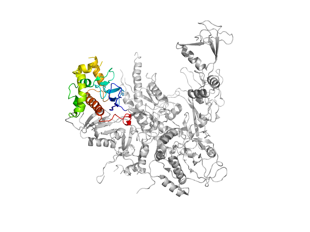e5x50A8 A:664-872 second helical domain in RNA-polymerase beta-prime subunit second helical domain in RNA-polymerase beta-prime subunit second helical domain in RNA-polymerase beta-prime subunit