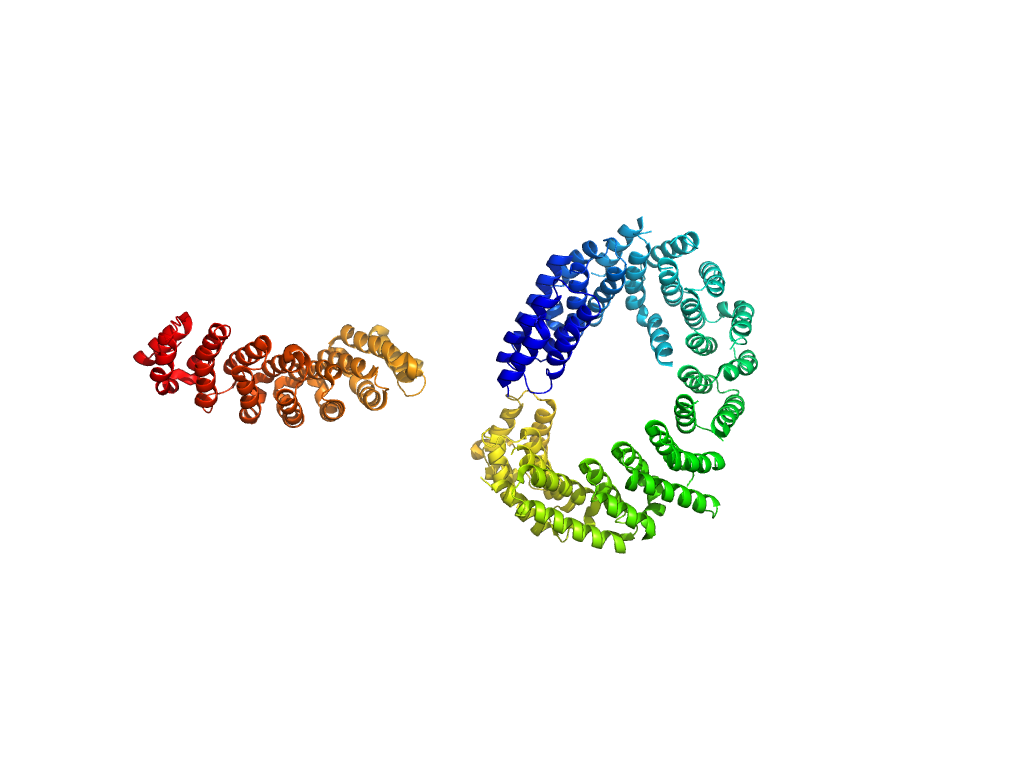 | e6bcxA1 | A:1385-1814,A:1867-2020 | Repetitive alpha hairpins | ARM repeat | ARM repeat |