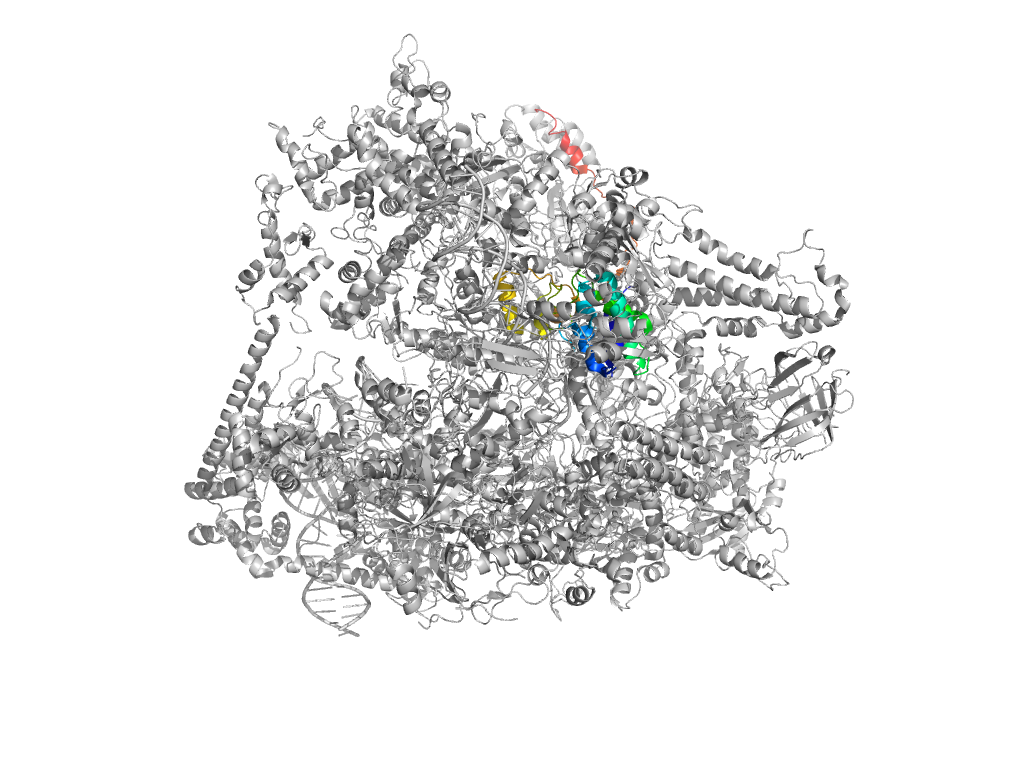 • T: central helical domain in RNA-polymerase beta-prime subunit