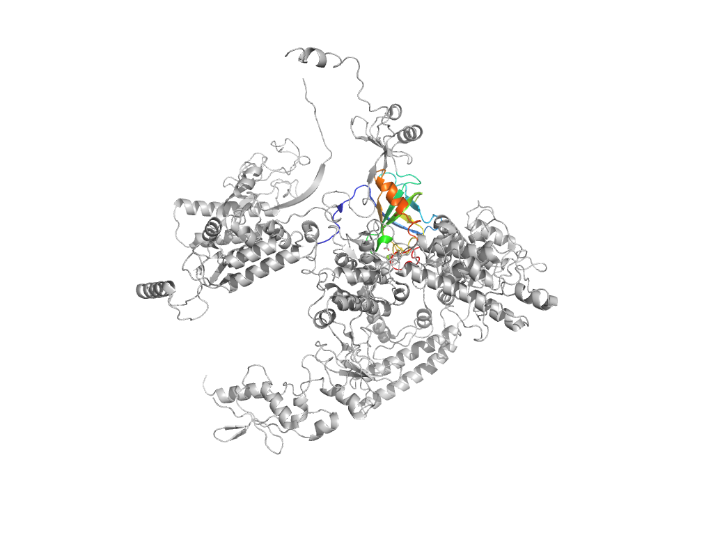 e6eu3A5 A:711-919 second helical domain in RNA-polymerase beta-prime subunit second helical domain in RNA-polymerase beta-prime subunit second helical domain in RNA-polymerase beta-prime subunit
