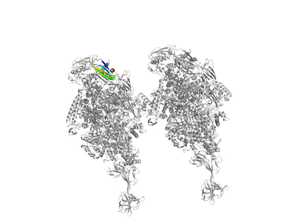 e6kqdN10 N:3-165,N:449-609 N-terminal domain in RNA-polymerase beta-prime subunit N-terminal domain in RNA-polymerase beta-prime subunit N-terminal domain in RNA-polymerase beta-prime subunit