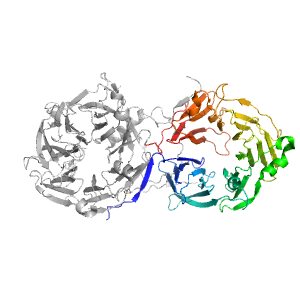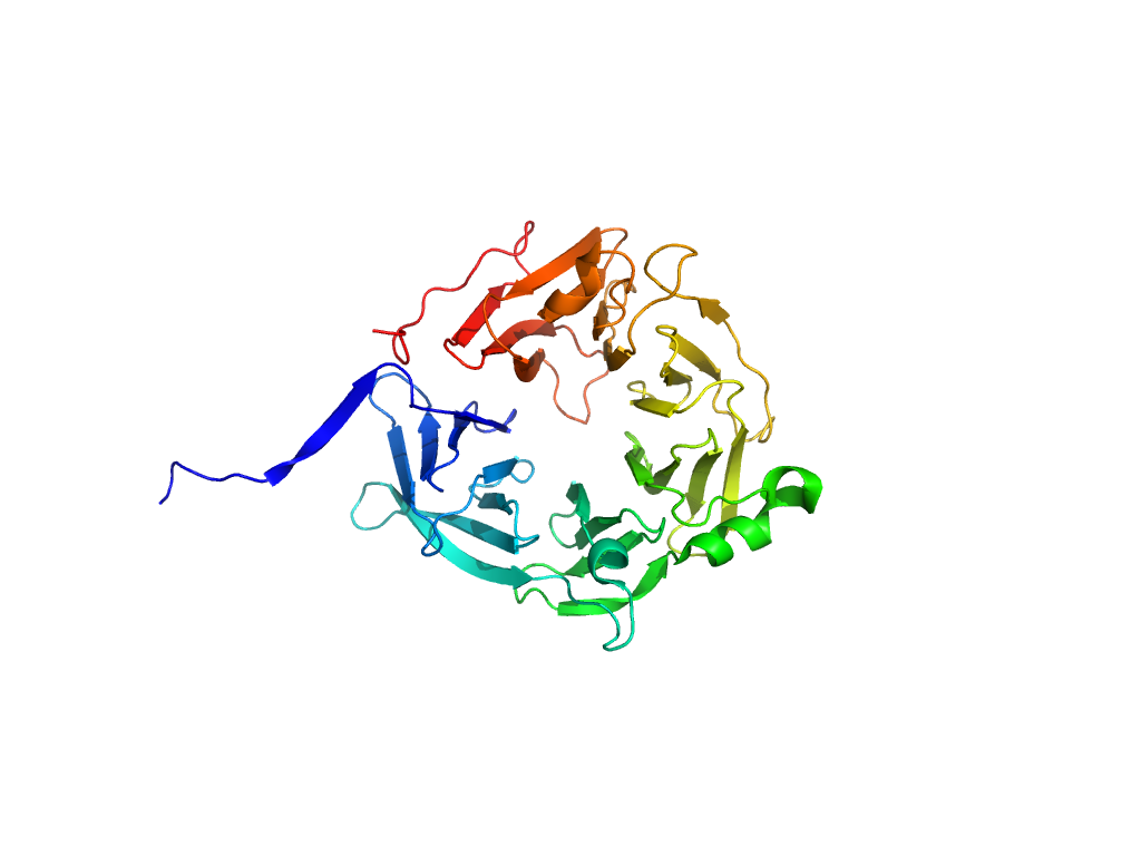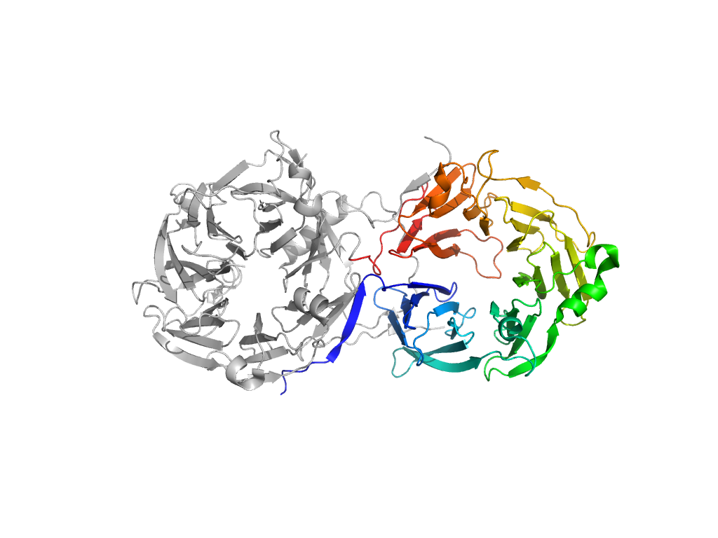 | e6n8pA1 | A:383-634,A:708-937 | beta-propeller-like | beta-propeller | 7-bladed |