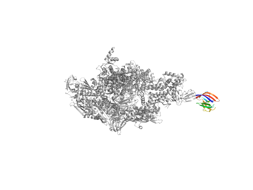 e6p71D4 D:949-1109 second helical domain in RNA-polymerase beta-prime subunit second helical domain in RNA-polymerase beta-prime subunit second helical domain in RNA-polymerase beta-prime subunit