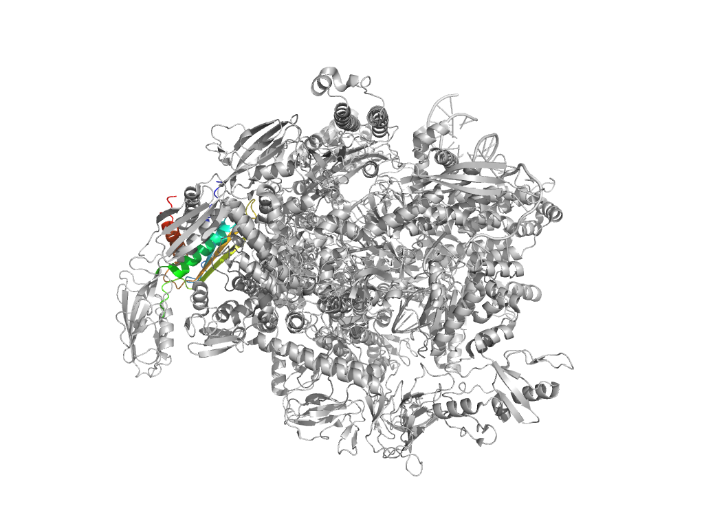 e6uu5DDD7 DDD:895-931,DDD:1214-1376 central helical domain in RNA-polymerase beta-prime subunit central helical domain in RNA-polymerase beta-prime subunit central helical domain in RNA-polymerase beta-prime subunit