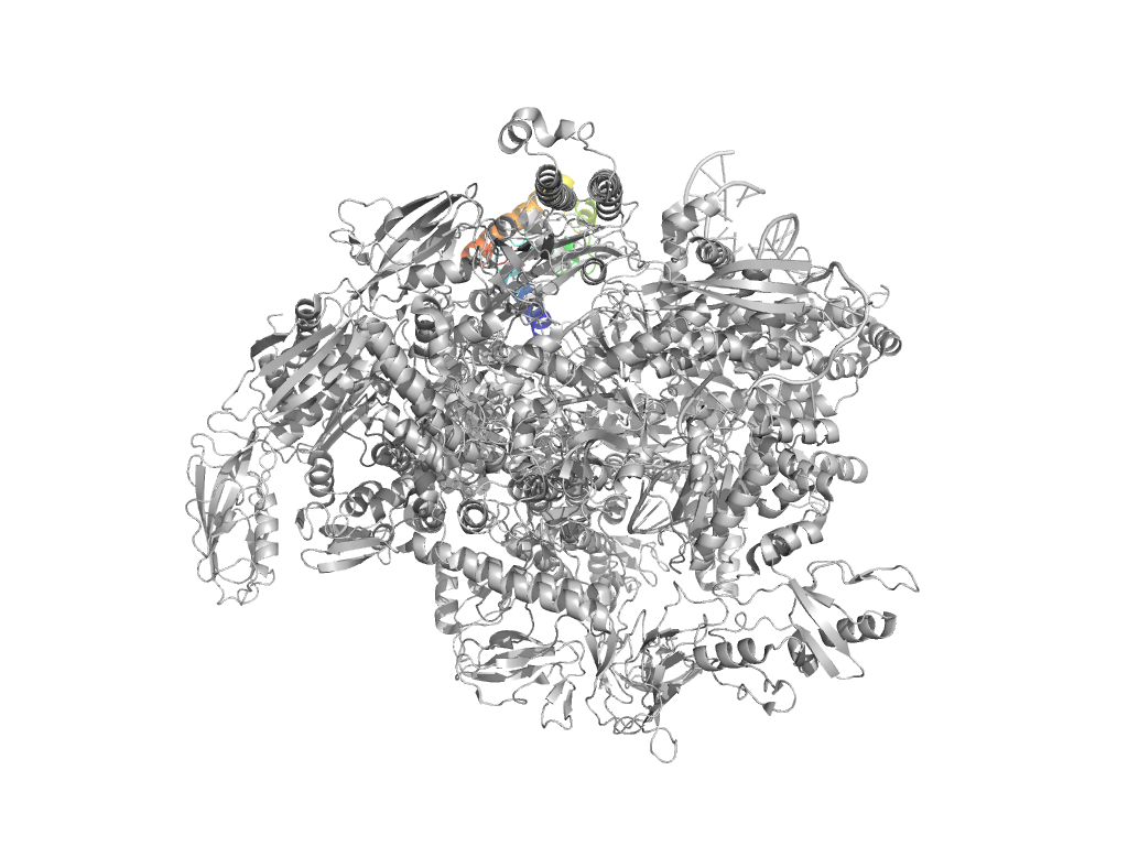 e6uu5DDD7 DDD:895-931,DDD:1214-1376 central helical domain in RNA-polymerase beta-prime subunit central helical domain in RNA-polymerase beta-prime subunit central helical domain in RNA-polymerase beta-prime subunit