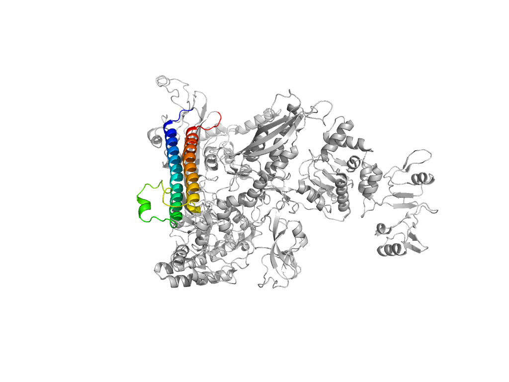 e6x7fAE6 AE:895-931,AE:1214-1373 central helical domain in RNA-polymerase beta-prime subunit central helical domain in RNA-polymerase beta-prime subunit central helical domain in RNA-polymerase beta-prime subunit