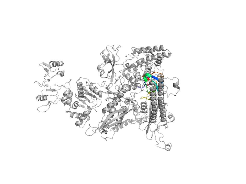 e6xgfAE3 AE:895-931,AE:1214-1373 central helical domain in RNA-polymerase beta-prime subunit central helical domain in RNA-polymerase beta-prime subunit central helical domain in RNA-polymerase beta-prime subunit