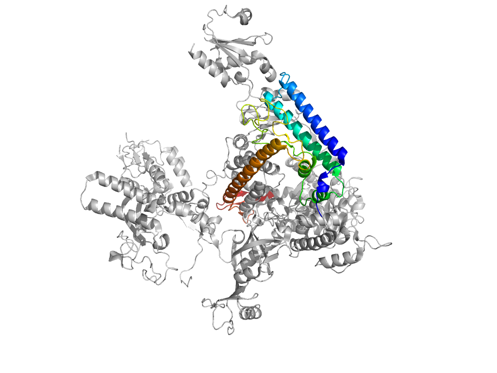 e7kedA5 A:1060-1102,A:1301-1446 central helical domain in RNA-polymerase beta-prime subunit central helical domain in RNA-polymerase beta-prime subunit central helical domain in RNA-polymerase beta-prime subunit