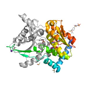 | DrugDomain: | P00929_F9F P00929_PEG P0A2K1_CL P0A2K1_CS P0A2K1_DMS P0A2K1_F9F P0A2K1_PEG P0A2K1_PLP | PDB: | 7kh6 |