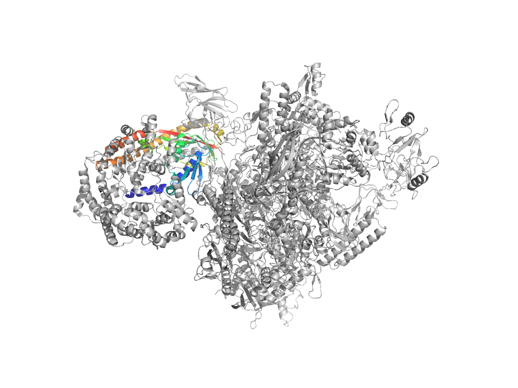 e7m8eD6 D:895-931,D:1214-1376 central helical domain in RNA-polymerase beta-prime subunit central helical domain in RNA-polymerase beta-prime subunit central helical domain in RNA-polymerase beta-prime subunit