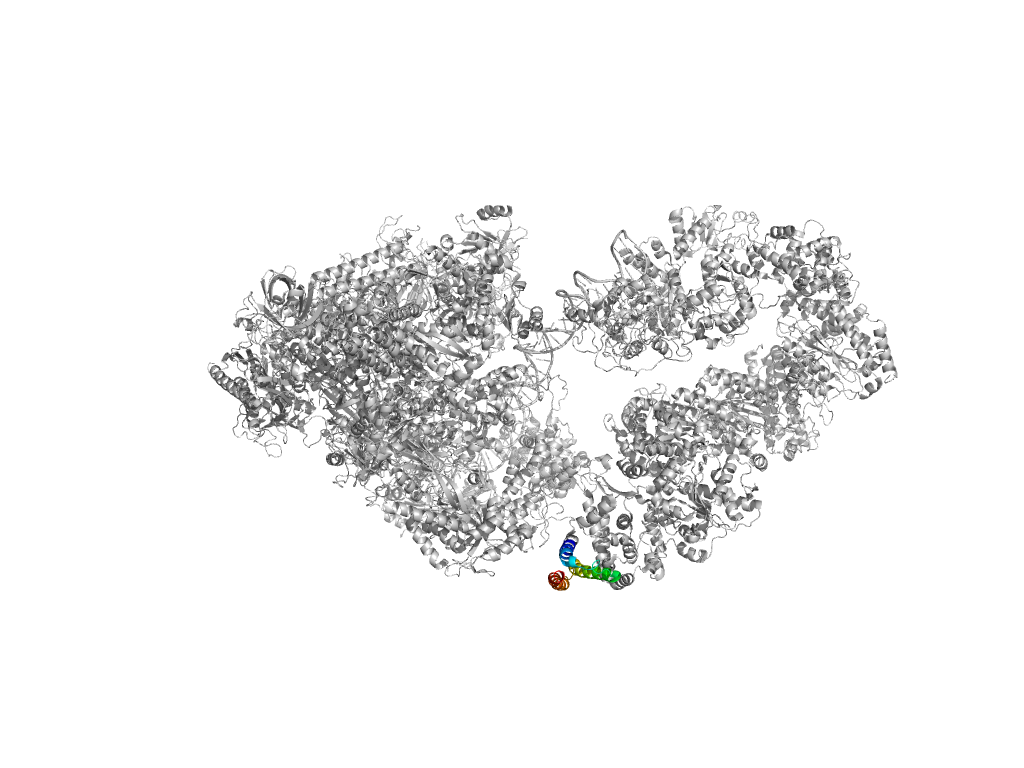 e7ml0A7 A:1060-1112,A:1331-1452 central helical domain in RNA-polymerase beta-prime subunit central helical domain in RNA-polymerase beta-prime subunit central helical domain in RNA-polymerase beta-prime subunit