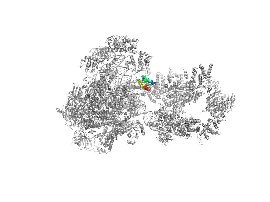 e7nvzA3 A:1083-1135,A:1361-1487 central helical domain in RNA-polymerase beta-prime subunit central helical domain in RNA-polymerase beta-prime subunit central helical domain in RNA-polymerase beta-prime subunit