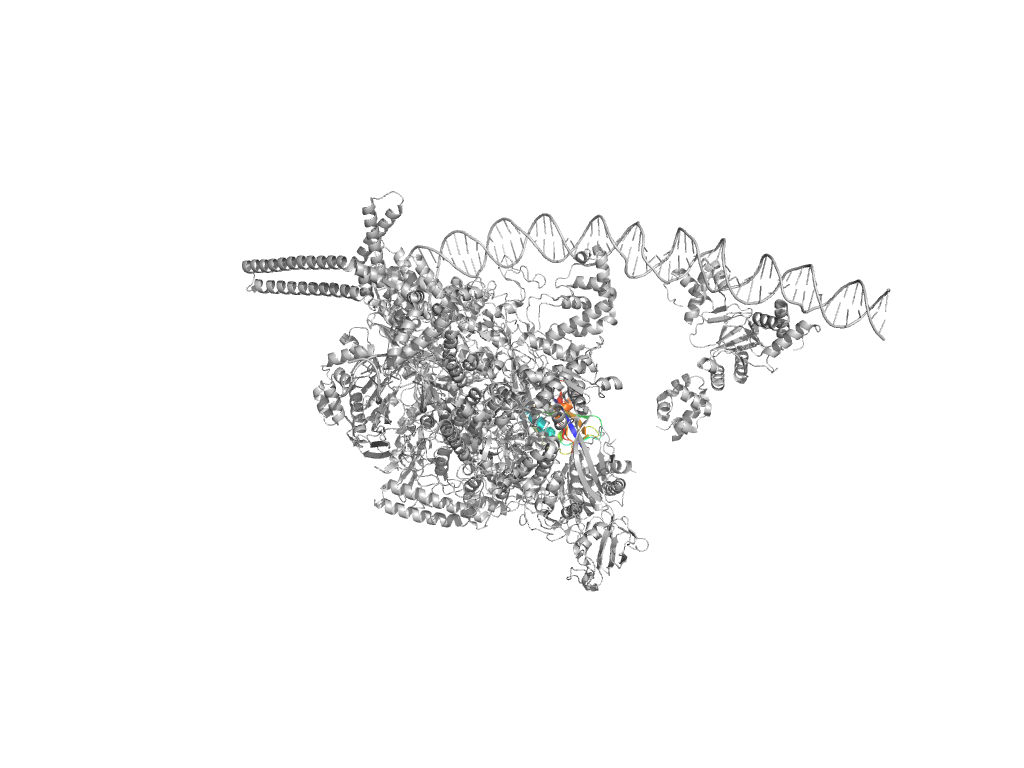e7vpdD05 D:579-590,D:600-618,D:631-635,D:640-729 first helical domain in RNA-polymerase beta-prime subunit first helical domain in RNA-polymerase beta-prime subunit first helical domain in RNA-polymerase beta-prime subunit