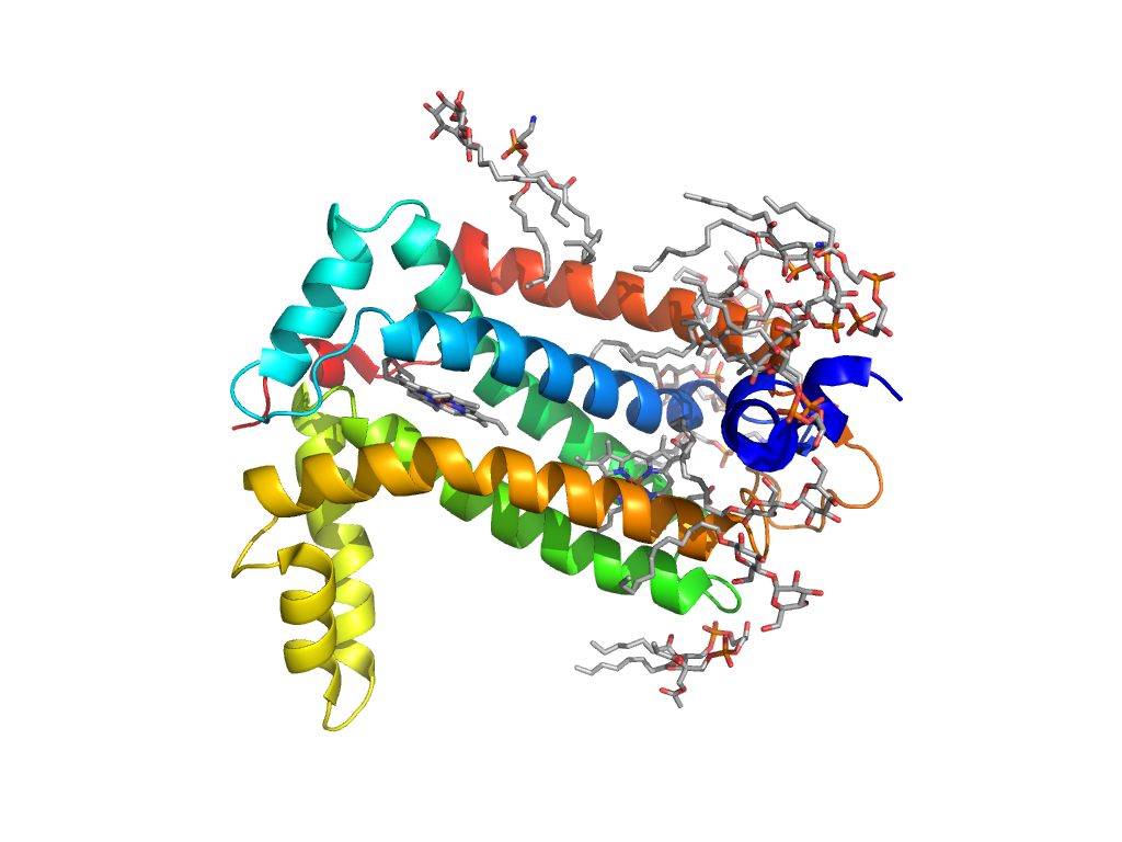 Transmembrane heme-binding four-helical bundle |