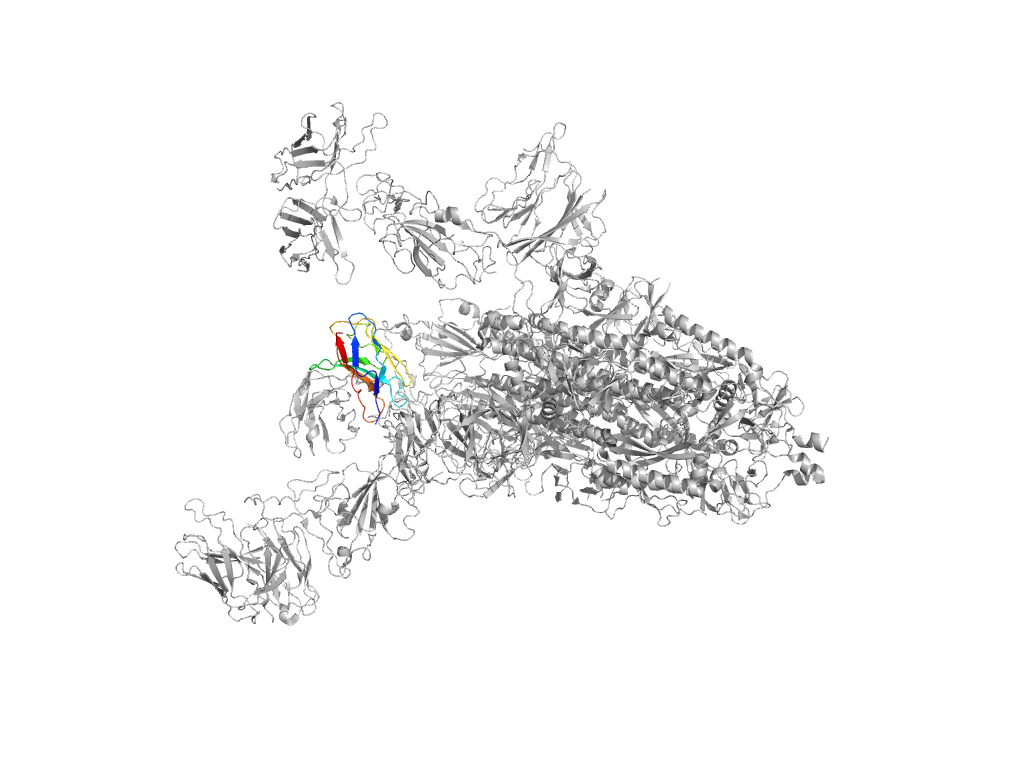 e8dxsB4 B:309-328,B:530-620,B:641-694 Beta domain of coronavirus spike glycoprotein Beta domain of coronavirus spike glycoprotein Beta domain of coronavirus spike glycoprotein