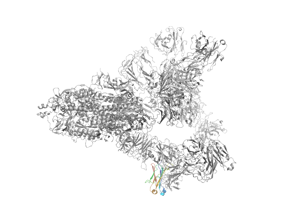 e8hc4A4 A:309-328,A:530-617,A:641-694 Beta domain of coronavirus spike glycoprotein Beta domain of coronavirus spike glycoprotein Beta domain of coronavirus spike glycoprotein