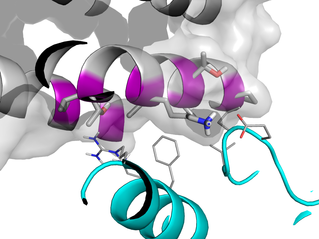 | e1a7eA1 | A:x,y,z->A:X-1/2,-Y+3/2,-Z+1 | Hemerythrin | Interaction Interface Pymol |
