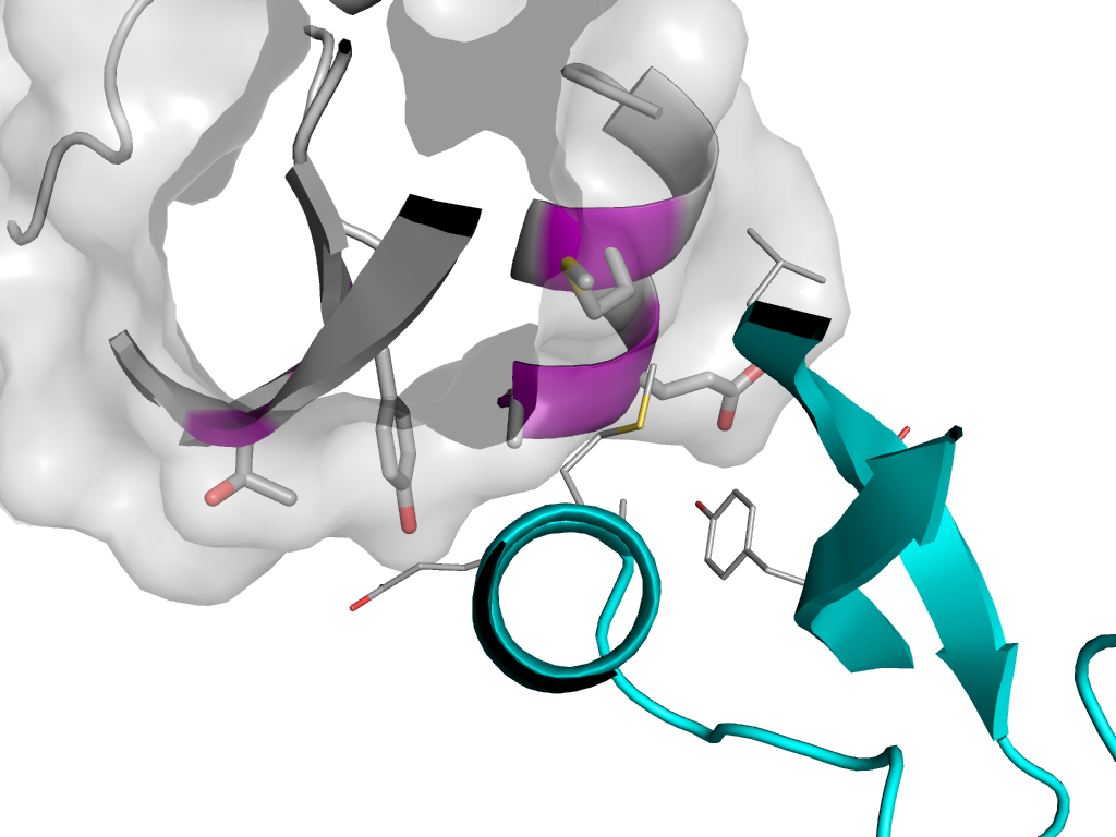 | e1b0cC1 | B:-X+Y,Y,-Z+1->C:x,y,z | BPTI-like | Interaction Interface Pymol |