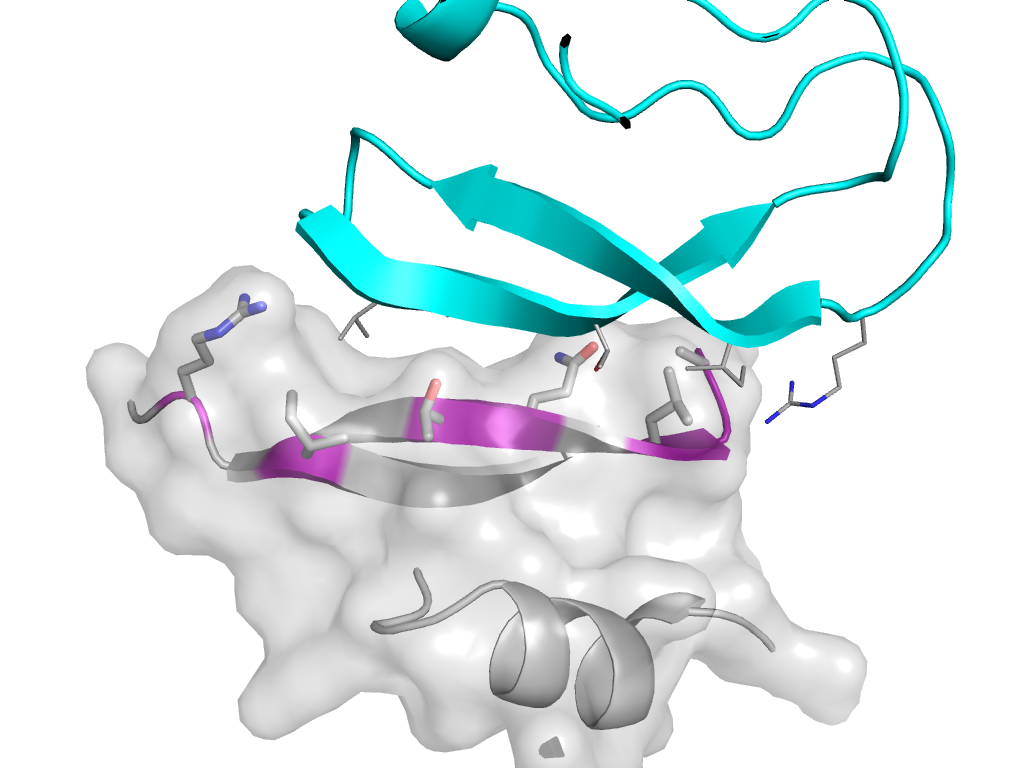 | e1bzxI1 | I:x,y,z->I:-X+Y,Y,-Z+3/2 | BPTI-like | Interaction Interface Pymol |