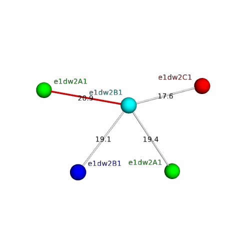 Structural contacts of domain e1dw2B1 of H-group "Cytochrome c":