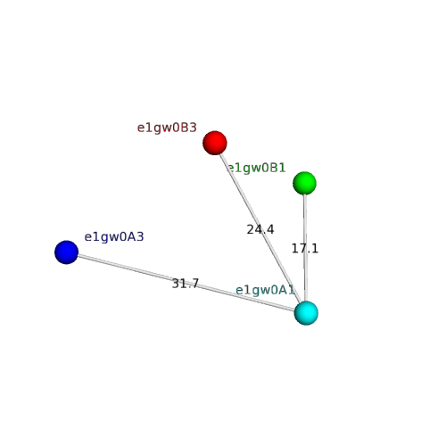Structural contacts of domain e1gw0A1 of H-group "Cupredoxin-related":
