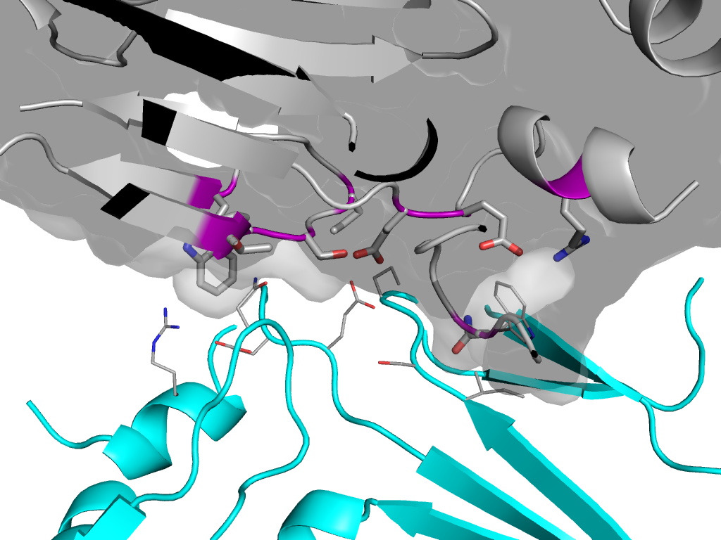 | e1j2fA1 | B:x,y,z->A:Y,X,-Z+1 | SMAD/FHA domain | Interaction Interface Pymol |