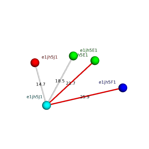 Structural contacts of domain e1jh5J1 of H-group "TNF-like":