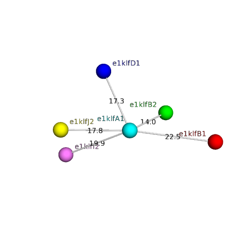 Structural contacts of domain e1klfA1 of H-group "Immunoglobulin-related":