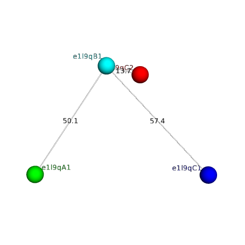 Structural contacts of domain e1l9qB1 of H-group "Cupredoxin-related":