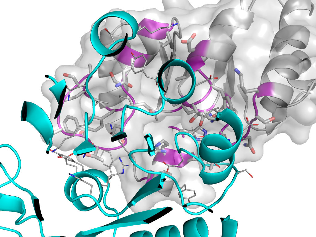 | e1nf0A1 | B:x,y,z->A:X,Y,Z | TIM barrels | Interaction Interface Pymol |
