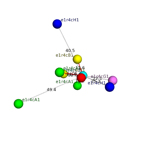 Structural contacts of domain e1r4cC1 of H-group "Cystatin/monellin":