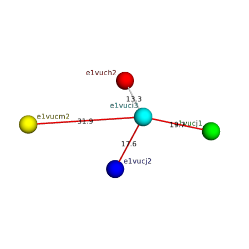 Structural contacts of domain e1vuci3 of H-group "Retrovirus capsid protein N-terminal domain":