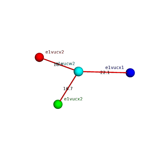 Structural contacts of domain e1vucw2 of H-group "Retrovirus capsid protein N-terminal domain":