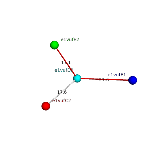 Structural contacts of domain e1vufD2 of H-group "Retrovirus capsid protein N-terminal domain":