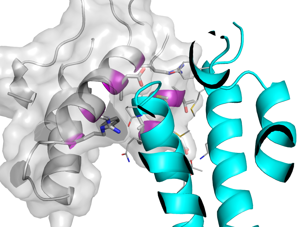 e1vufe2 f:X,Y,Z->e:x,y,z Retrovirus capsid protein N-terminal domain Interaction Interface Pymol