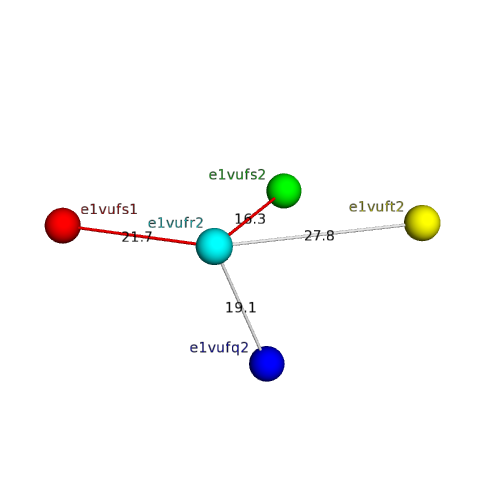 Structural contacts of domain e1vufr2 of H-group "Retrovirus capsid protein N-terminal domain":