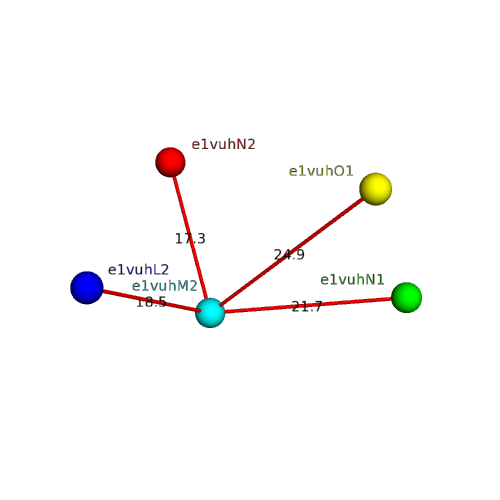 Structural contacts of domain e1vuhM2 of H-group "Retrovirus capsid protein N-terminal domain":